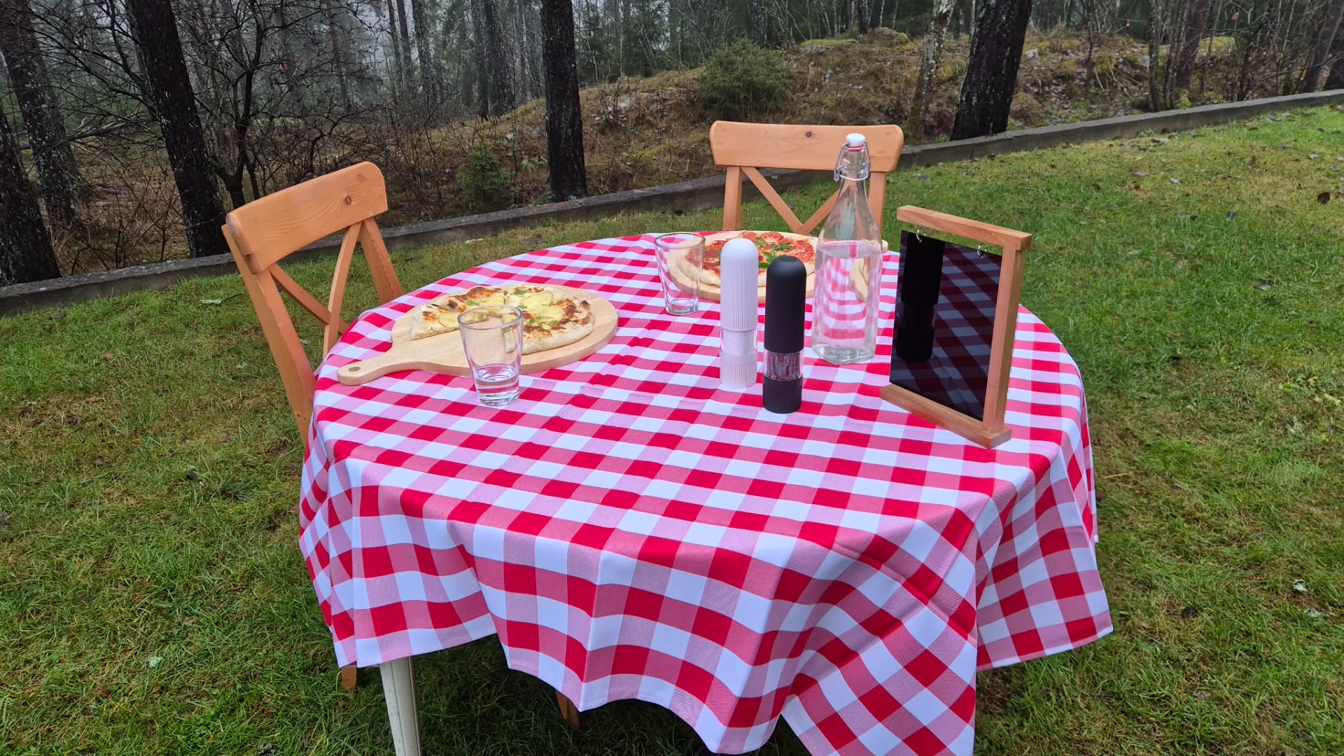 Vi kan ta med telt, serveringsbrett, duker og annet utstyr, eller bruke utstyr du allerede har selv. Mail oss på pizza@bondevik.no, så finner vi ut av det.